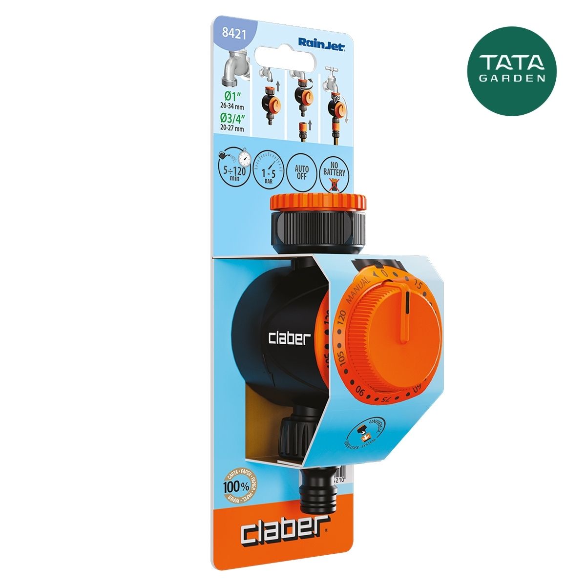 Timer hẹn giờ Claber 8421 yêu cầu người dùng tự bật khi cần tưới. Nhưng sau một khoảng thời gian đã cài đặt thì timer sẽ tự động ngắt tưới, vô cùng tiện lợi và nhanh chóng.